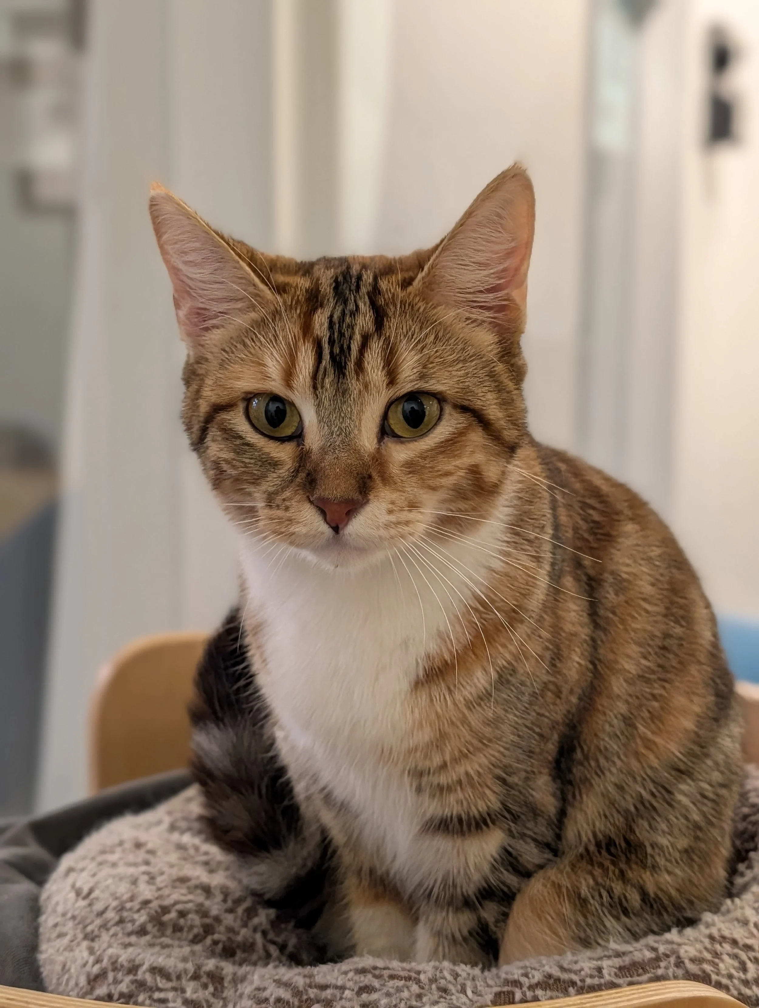 Lin is only available for adoption as a bonded pair with her mama, Toph. She is not adoptable as a single cat.