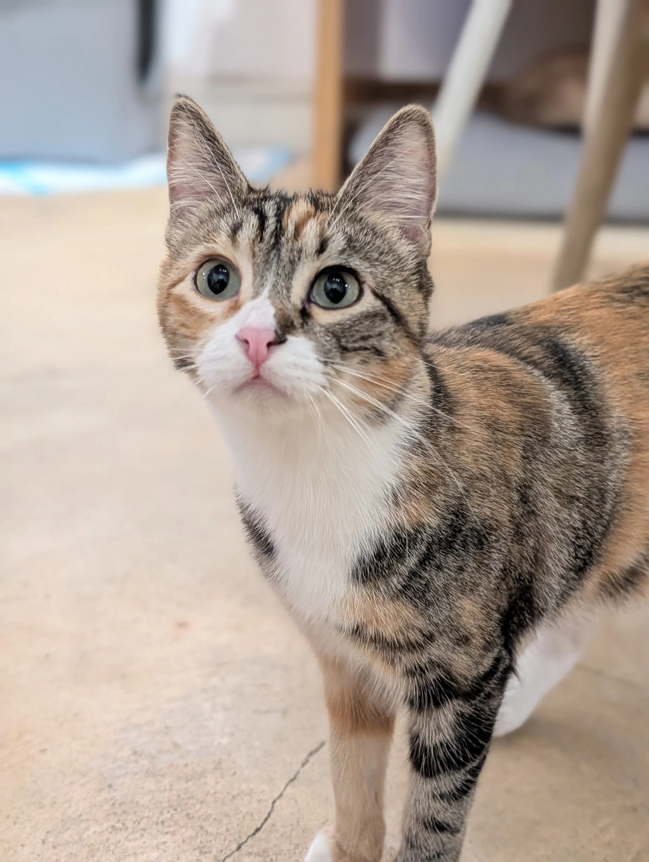 Su (short for Suyin) is a playful and very adventurous kitten! When she isn’t tackling and chasing her sister Lin around the lounge, she can be found napping in a cozy bed, sometimes meowing in demand of pets and affection. Su is a very friendly and sweet girl that would be the purrfect addition to any home with other young cats.